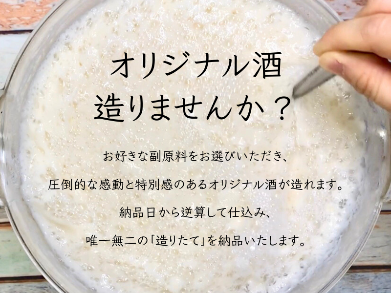お好きな副原料をお選びいただき、圧倒的な感動と特別感のあるオリジナル酒が造れます。